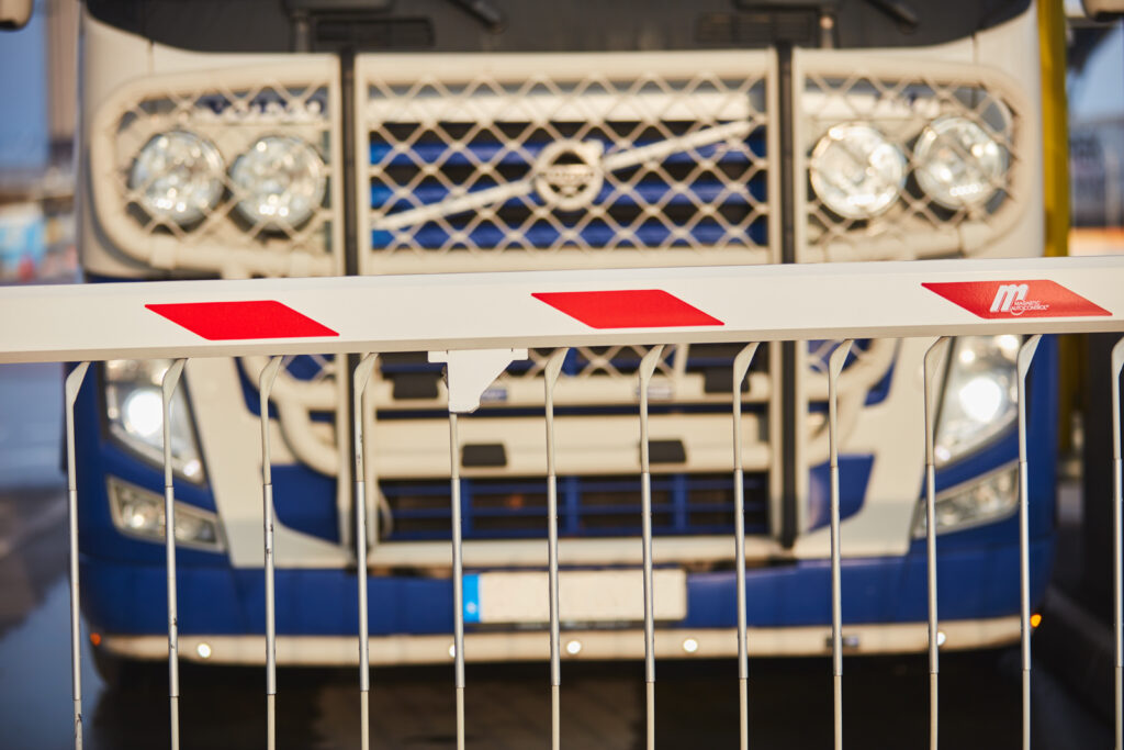Inom inhägnat hamnområde sker omfattande hantering av gods med tunga arbetsmaskiner. Om du lämnar dit fordon, använd alltid varselkläder, minst varselväst klass III. Och skyddshjälm i närområde av hängande last.